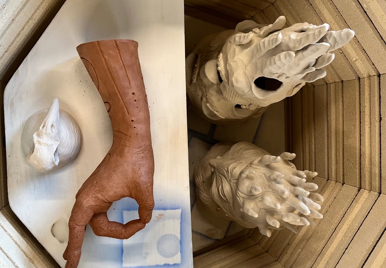 Handcrafted spiritual sculptures designed to awaken and elevate your inner peace. I use emerging eyes and hands as well as plants and flowers as a symbolic representation of spiritual growth and expanded consciousness. My firing process ranges from mid-range and cold finishes to atmospheric high fire.